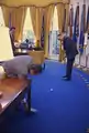 ترامپ برای فرش کف دفتر از طراحی کاملا مشابه رونالد ریگان استفاده کرد. |