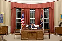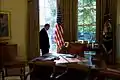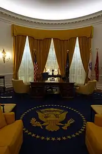 ![]() شبیه سازی دفتر بیضی بوش پدر در کتابخانه ریاست جمهوری جرج بوش |