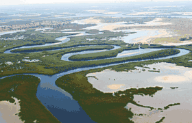 ![]() نمای هوایی از پارک ملی دلتای سالوم واقع در دلتای سالوم | |