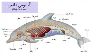 در طی ۶۰ میلیون سال فرگشت، بدن دلفینها برای زندگی و شنا در آب خود را تطابق دادهاست. بعضی از مهمترین دگرگونیهای صورت گرفته در اندامهای دلفینها برای زندگی در آب عبارتند از توانایی حرکت در آب، شیرجه، تنظیم دمایی، و تنظیم فشار درونی بدن.[13]