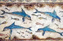 در یونان باستان دیده شدن پرش دلفینها از روی امواج تولید شده توسط کشتیها به فال نیک گرفته میشد. آنها راهبران ارابه آفرودیته بودند. در یک افسانه یونانی، دلفینها به صورت کسانی به تصویر کشیده شدهاند که در ابتدا انسان بودند، ولی بعدها توسط دیونیسوس به دلفین تبدیل شدند.[113] در اسطورههای هندو، دلفین رودخانه گنگ با گانگا، ایزدبانوی رود گنگ، در ارتباط است. او گاه سوار بر مرکبی که یک دلفین آن را میکشد به رفتوآمد میپردازد.[114]