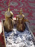 دله قهوه (به عربی: الدلة) ظرف مسی اغلب طلائی رنگ است که مردم عرب آن را دله خطاب میکنند. این ظرف که حکم قهوه جوش را دارد در اکثر مراسم رسمی و غیررسمی این مردم استفاده میشود. مردم عرب اهواز همچون دیگر مردم کشور ایران فرهنگ خاص خود را دارند. مراسم قهوه نوشی در چهارمین همایش سراسری شورای سیاستگذاری در لیست آثار ثبت ملی ایران قرار گرفت.[1][2][3] دله قهوه یکی از اشیاء و ابزارهای فرهنگی مردم عرب است که در مراسمهای رسمی چه در کشورهای عربی در مراسم بینالمللی و حتی در برگزاریهای هیئت دولت در خوزستان، و بازدیدشان از مردم عرب ایران، همواره از این وسیله در پذیراییها به عنوان نماد فرهنگی استفاده شدهاست. در برنامهای در اهواز عشایر عرب خوزستان یک «دله قهوه» (ظرف مخصوص دم کردن قهوه مخصوص عشایر عرب) را بهطور نمادین به وزیر اطلاعات اهدا کردند.[4]