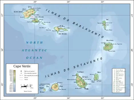 | پایتخت و بزرگترین شهر | پرایا ۱۴°۵۵′ شمالی ۲۳°۳۱′ غربی |