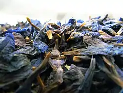 چای آبی: پنیرک، اسطوخودوس (لاوندا)، گل گندم (رنگ آبی چای فقط مدتی دوام دارد و اگر زمان زیادی از افزودن آبجوش بگذرد چای تغییر رنگ خواهد داد)[8]
