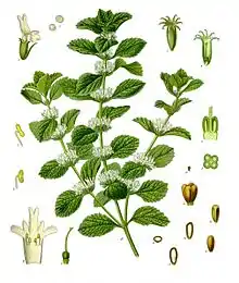 | پونه کوهی | Origanum vulgare | ![]() | برگ | آرامبخش است و جهت رفع خستگی و سردرد مؤثر است. تسریعکننده عمل هضم است و نوشیدن چای آن بعد از غذا توصیه میشود. برای کم کردن سرفه مؤثر است همچنین تنظیم قاعدگی در زنان تأثیر دارد.[63] |
