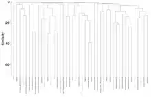 دندروگرام از خوشهبندی سلسله مراتبی (UPGMA) با ارتفاع نودها (UPGMA) با دادههای توالی باکتری 5S rRNA شناسایی شدند.[1]).