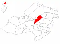 ![]() Denville Township highlighted in Morris County. Inset map: Morris County highlighted in the State of New Jersey. | |