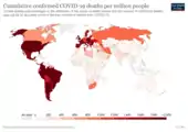 جمع موارد مرگ تأیید شده در اثر کرونا به ازای هر یک میلیون نفر[102]