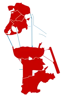 ![]() Map of parishes with confirmed (red) coronavirus cases (as of 29 March) | |