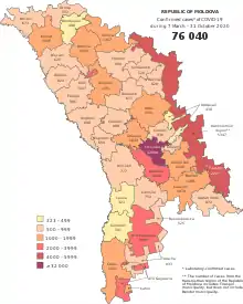 ![]() Map of cases of COVID-19 in Moldova (۳۱ اکتبر ۲۰۲۰) | |