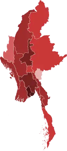 ![]() Map of the pandemic in Myanmar (as of 2۴ دسامبر ۲۰۲۰)
