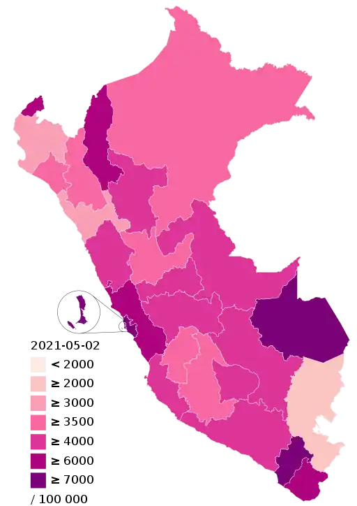 مرگها | ۶۹٬۳۴۲ (وزارت بهداشت پرو) ۱۸۵٬۳۸۰ (SINADEF)[1] |