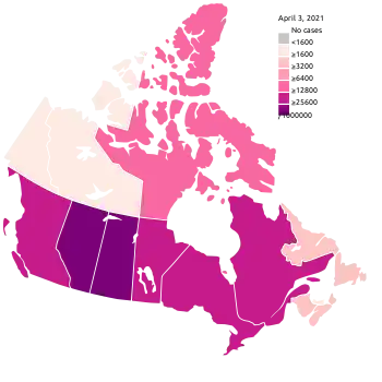 ![]() Total cases per million inhabitants by province/territory | |