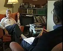 ![]() دنیس رایت در حال مصاحبه با علی اکبر عبدالرشیدی خبرنگار ایرانی | |