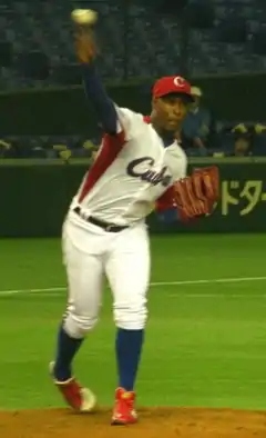 ![]() Betancourt pitching for the Cuba national team in 2013 World Baseball Classic | |||||||||||||||||||
