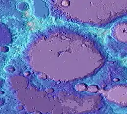 نقشه ی توپوگرافی برجسته سایه دهانه فون کارمان.