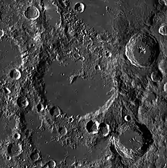 Oblique Lunar Orbiter 5 image, looking west; north sector of crater buried by Leibnitz ejecta