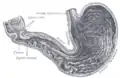 ![]() در این طرح، نشانههای کالبدشناسی معده مشخص شدهاست. | |