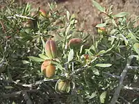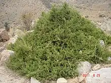 به غیر از درختان ارس که در بلندیهای شاه جهان، و کوه شاه حسن و بهطور پراکنده قابل مشاهده است، اغلب از درختان پسته، انار، زبان گنجشک، زرشک، ارغوان و انجیر وحشی، بومادران، استاقدوس، قسنی، کتیرا، گون ،قوق ،سیقر قوروقو، ورگ و غیره... تشکیل شدهاست.