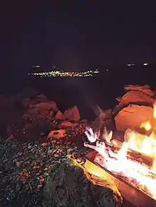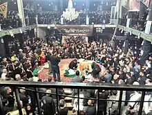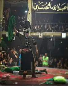 عصر عاشورا،تعزیه ای در بیرون از حسینیه اجرا میشود و آتش زدن خیمه ها به تصویر کشیده میشود