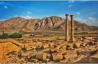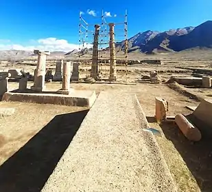 محققین تعداد ستون های سنگی بنا شده در این مکان را 12 عدد میدانند که با گذر زمان و با تاثیر عوامل محیطی،اکنون تنها دو ستون از آن بر جای مانده است