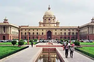 در سمت منتهیالیه غربی میدان مرکزی دهلی نو که دروازه هند در میان آن قرار گرفته، مجموعه بزرگ کاخ ریاست جمهوری قرار دارد. دفتر نخست وزیر و وزارت خارجه (معروف به ساوت بلاک South Block) در حاشیه شرقی و ساختمان مدور مجلس هند نیز در حاشیه شمال شرقی این کاخ واقع شدهاست. این مجموعه، بخش اصلی از معماری انگلیسی دهلینو است.