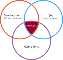 بهطور سنتی در سازمانهایی که واحدهایی بر اساس تفکیک عملکرد وجود دارد، بهندرت واحدی با ترکیب و ادغام عملکرد چند واحد بهوجود میآید. اما DevOps ترویج مجموعهای از فرایندها و روشها برای فکرکردن دربارهٔ ارتباط و همکاری، بین واحدهای توسعه و QA (تضمین کیفیت) و واحد عملیات فناوری اطلاعات است.[12] در برخی سازمانها این همکاری با قراردادن واحد عملیات فناوری اطلاعات در واحد توسعهٔ نرمافزار تیمیِ چندعملکردی محقق میشود و ممکن است همراه با مدیریت ماتریسی باشد.