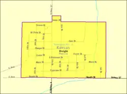 دوایت در سال ۱۸۸۷ با عبور خط راه آهن شیکاگو، کانزاس و نبراسکا شهریت خود را شروع کرد.[6] این شهر به نام صاحب زمین شهر دوایت راتبون (به انگلیسی: Dwight Rathbone) نام گرفت. دوایت در سال ۱۹۰۳ به عنوان شهر شکل گرفت.[7]