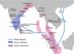 ![]() نقشه بیشترین وسعت حکومت چولا ح. 1030 | |||||||