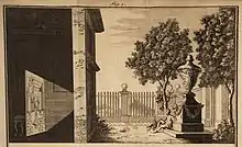 تصویری از کاخ سلطنتی جدید در قلعه پراگ بر روی سوراخ سقف کاشی بر روی دیوار اتاق زیر شیروانی ظاهر شدهاست
