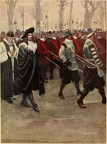 ![]() چارلز یکم انگلستان و سربازان جنگهای داخلی انگلستان تصویری از داستان جزیره: تاریخ کودکان انگلستان (۱۹۰۶) | |