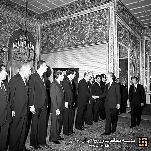 ![]() کابینهٔ بختیار در حضور شاه | |