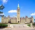 کانادا دارای حکومت پادشاهی مشروطه است. ملکه الیزابت دوم از بریتانیای کبیر، ملکه کانادا و رئیس کشور بهشمار میرود.[1][2] حکومت کانادا دموکراسی پارلمانی با نظام فدرال است. قانون اساسی کانادا بر چارچوبهای قانونی کشور حاکم است و شامل قوانین و قراردادهای نوشته و نانوشته است.[3] قانون اساسی شامل قوانین آزادی و حقوق بشر نیز میشود که از حقوق پایه انسان و آزادی در این کشور پشتیبانی میکند و در کل بر این پایه است که حق هیچکس در این کشور نمیتواند توسط هیچ شخص حقیقی و شخص حقوقی زیر پا گذاشته شود. اگر چه این قانون شامل یک بخش ۳۳ قسمتی در مورد این حقوق نیز هست که به پارلمان و مجلس ایالتی این دولت این اجاره را میدهد که برای یک دورهٔ ۵ ساله، بطورموقت برخی از بخشهای دیگر این منشور را برای صلاح کشور کنار بگذارند.