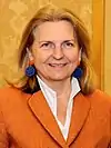 کارین کنیسل | وزیر اروپا، ادغام و امور خارجه | ۱۸ دسامبر ۲۰۱۷ | مستقل (حزب آزادی اتریش نامزد) | |||
