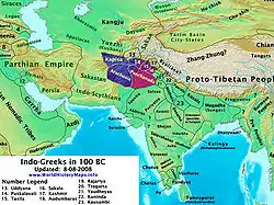 ![]() Territory of the Indo-Greeks circa 100 BC. | |||||||||
