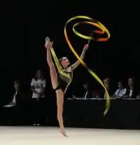 ![]() Dominika Červenková performing her ribbon routine during the 2005 World Games in Duisburg | |