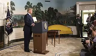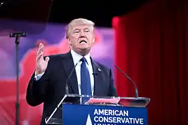 دونالد جان ترامپ[7] (به انگلیسی: Donald John Trump؛ زادهٔ ۱۴ ژوئن ۱۹۴۶) یک سیاستمدار آمریکایی است که بین سالهای ۲۰۱۷ تا ۲۰۲۱ چهل و پنجمین رئیسجمهور ایالات متحده آمریکا بود.