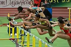 - 60 metres hurdles. (2014, June 12). In Wikipedia, The Free Encyclopedia. Retrieved 08:19, June 27, 2014, from http://en.wikipedia.org/w/index.php?title=60_metres_hurdles&oldid=612672924