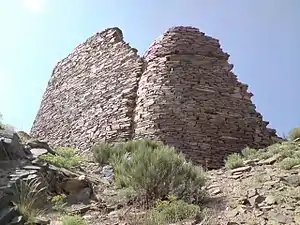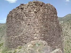 سنگنوشته: این قلعه قدیم بود بعد از هزار سال امیرابرهیم حسینی عمارت کرد بخط اسماعیل حسینی سنه سبعین ثمانمائه. (هشتصد و هفتاد قمری)