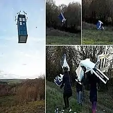 عدهای علاقهمند به سریال دکتر و همزمان با مراسم پنجاه سالگی دکتر هو جعبهای آبی همانند تاردیس از جنس پلی استر با ۱۲ موتور به هزینه ۱۰۰۰ پوند ساختند و سعی کردند آن را به پرواز درآورند اما این جعبه شکست و نابود شد.