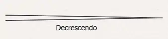 نشانه دکرشندو در بخشی از یک قطعه موسیقی - دِکرِشِندو مُولتو (Decrescendo molto): به شدت و به سرعت از نوانس قوی به ضعیف آمدن.