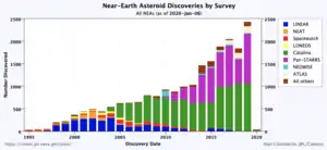 تعدادی از اجسام نزدیک زمین که توسط پروژههای مختلف شناسایی شدهاند.