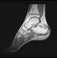 یک تصویر ام آر آی از پاشنهٔ پا با دید ساژیتال