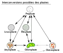 - اتیوپلاستها که کلروپلاستهایی هستند که به علت نبود نور کافی تغییر شکل یافتهاند
