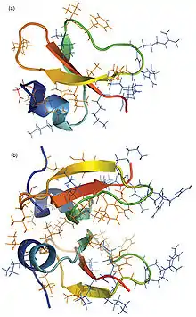 - Dias RD, Franco OL (October 2015). "Cysteine-stabilized αβ defensins: From a common fold to antibacterial activity". Peptides. Festschrift to highlight the career of Abba J. Kastin as a founding editor, researcher, and educator in the peptide field. 72: 64–72. doi:10.1016/j.peptides.2015.04.017. PMID 25929172.