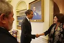 باراک اوباما، رئیس جمهور آمریکا درگفتگوی تلفنی با دیلما روسف پیروزی او را تاریخی خواند.[7]