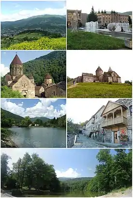 ![]() از بالا چپ: افق مریی دیلیجان • Dilijan town hall صومعه هاغارتسین • Goshavank Monastery پارک ملی دیلیجان • Sharambeyan street of old Dilijan دریاچه پارز | |