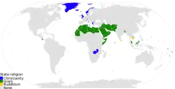 در حال حاضر فقط کشورهای واتیکان، یونان، انگلستان، نروژ، دانمارک، جزایر فارو، گرینلند، ایسلند، مالت، لوکزامبورگ، لیختن اشتاین، کاستاریکا و زامبیا یک حکومت دینی بر اساس آیین مسیحیت هستند.