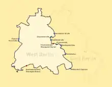 ![]() نمایی از سمت غربی به دیوار برلین و «نوار مرگ» | |