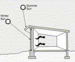 - عملکرد یک فضای خورشیدی، بستگی به زاویهٔ جهتگیری شیشههای اصلی آن نسبت به جهت جنوب دارد.